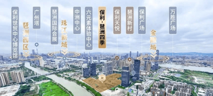 保利·琶洲四季位于正儿八经的琶洲中区,原名为保利琶洲108项目,是琶洲村的最后一处留用地。在海珠区新港东路琶洲村口对面,北临琶洲眼、保利天悦等成熟商业住宅区,南望羊城最大城市绿心“广州万亩果园”,西邻琶洲塔公园城市景观,东接黄埔古村及古港。