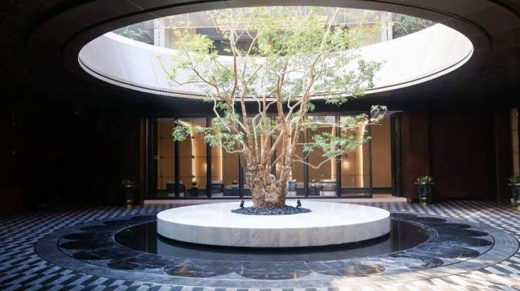融合“天圆地方”的东方哲学理念与岭南自然美学打造岭南艺术会所及归家入口,为项目圈层人士,搭建一个会客、交流、互动的生活场域。