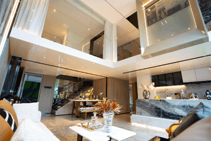 这种设计,其实更多会出现在多层别院产品,在高层项目中还是首次出现,对于整个广州商业大平层来讲,都是一次产品力的大跃升。