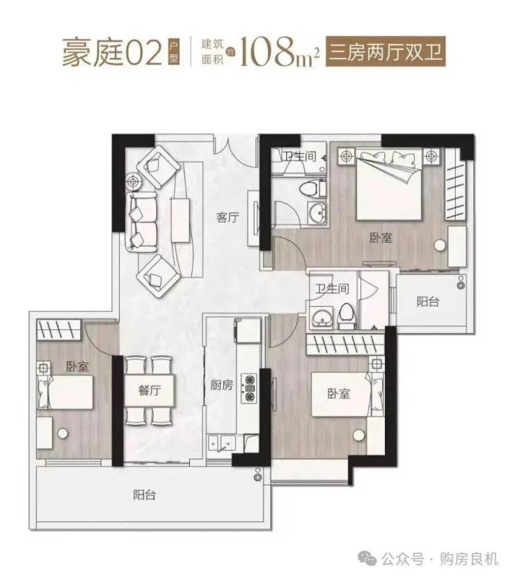 豪庭02单元 ——【108㎡全南向!三房二厅二卫】