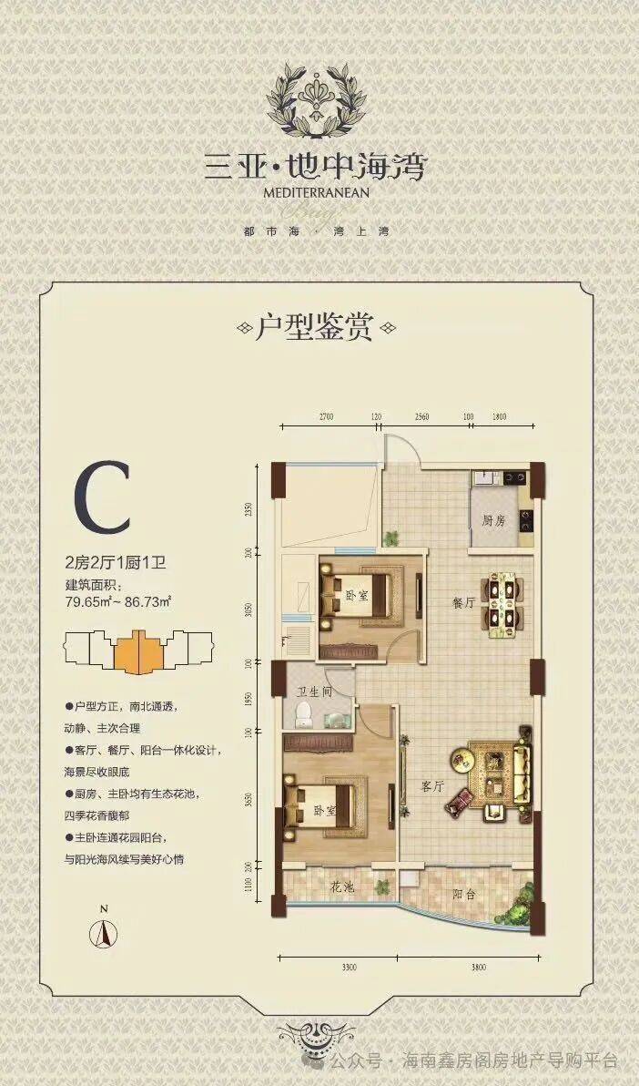 海南三亚【地中海湾】85-166平两房三房 一线海景大宅