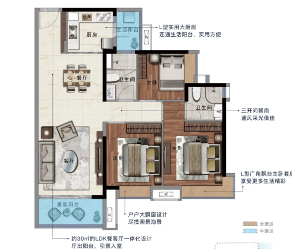 项目精心设计约16万㎡新加坡式滨海轻奢艺术园林,围绕“山”、“海”、“城”主题,打造自由浪漫的品质生活。