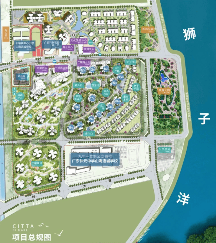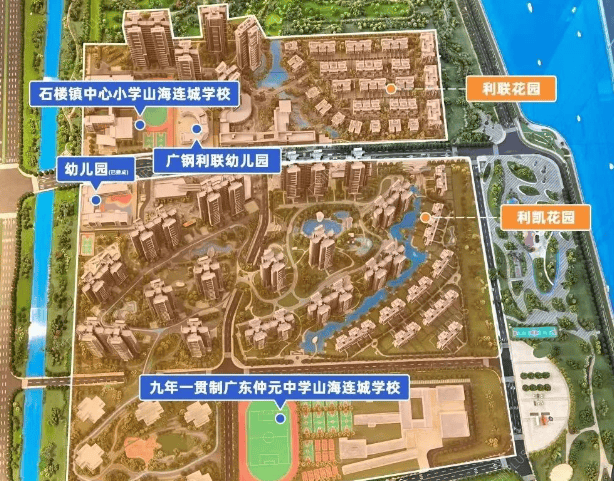 教育是项目的亮点,配套建设五所学校:包含两所幼儿园、两所小学及一所48班制中学。其中,石楼镇中心小学山海连城校区作为24班规模的小学已投入使用;备受关注的72班仲元中学在24年已经完成主体建设,25年9月正式启用,一共是24班小学和48班初中,目前是区域内规模最大的基础教育综合体。