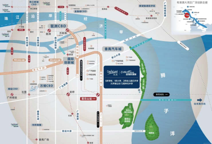 未来片区的交通状况将有所改善,规划中的地铁8号线东延线(从莲花湾至万胜围)预计将于2027年底建成通车,全线共设8个站点。通车后,从莲花湾前往海珠区将仅需20分钟车程。