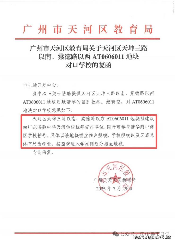 地块出让时就把学校安排得明明白白拟建议由广东实验中学天河学校(即保利天瑞配建学校,九年制)统筹安排学校学位,同时可参与清华附中湾区学校号。