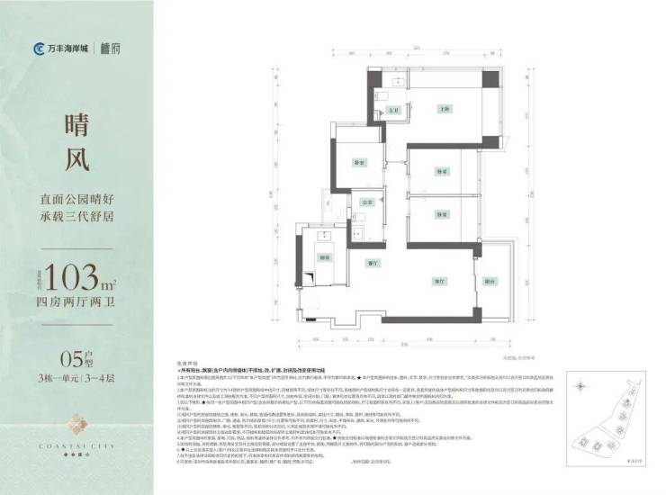 项目清晰地将产品重心聚焦于满足城市中坚力量家庭升级需求的改善型四房,为期望通过一次置业完成家庭生活全面升级的购房者而言,提供了一个理想的置业选择。同时,包含了少量珍贵的“上车”三房,为渴望入主海岸大城的精英家庭,提供了难得的入市机遇。