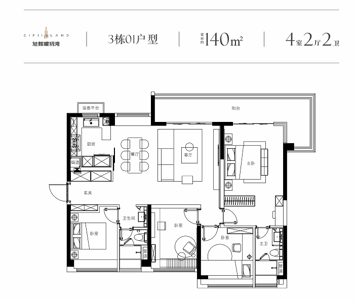 预算充足的可以考虑建面约140㎡4房户型,居住更加舒适,满足家庭不同阶段需求。