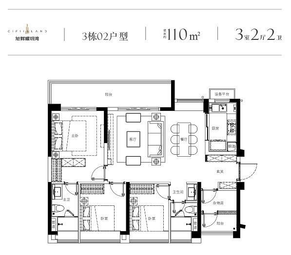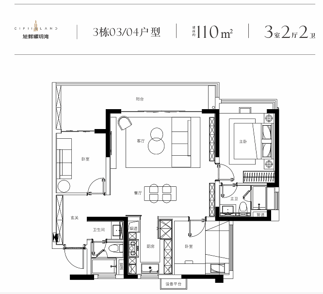 首先来看建面约110㎡3房户型,这个面积的有两个户型,分寸之间,实用性和舒适性尽显。