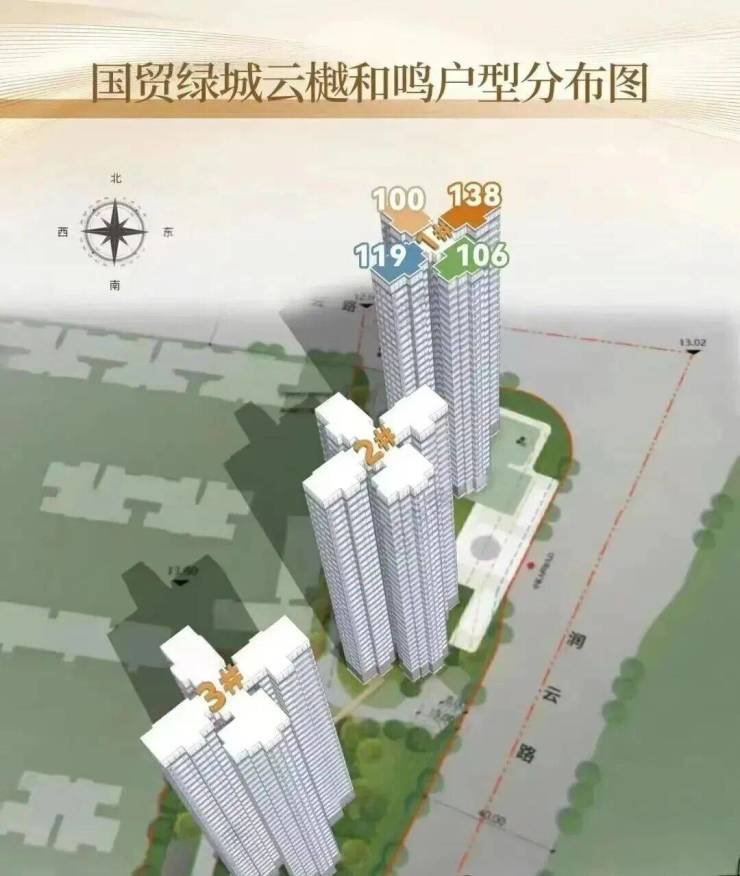 建面分别是约100㎡、106㎡、119㎡、138㎡四个户型。