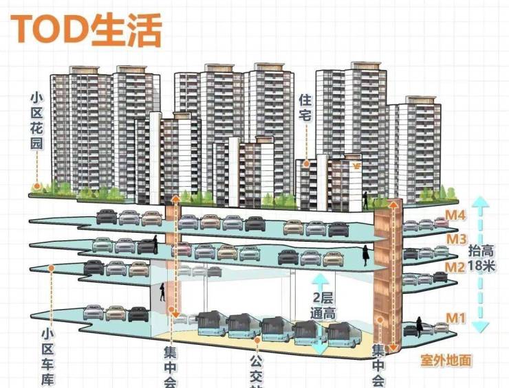【公交】打造首个全新的公交TOD模式,项目整体抬高18米,楼下架空层为阳光观景车库和阳光公交站场,下楼即上车,到站即归家,解决回家最后一公里问题,在车库也可以看一线云山景;