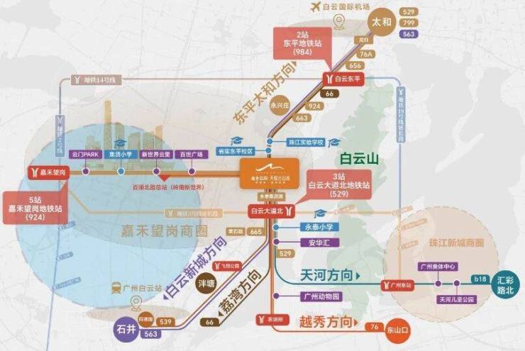【地铁】地铁2号线、3号线、14号线,半小时通达广州主城中心生活圈;还预留公交站场与佛山地铁6号线地下衔接通道,未来将实现集公交、地铁一体化换乘。