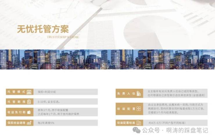 项目入驻寓米酒店管理公司,国际大牌实力有保障,由专业团队运营全方位托管,收益稳健增长,保底收益即可达140元㎡,投资回报率高达5.61%。