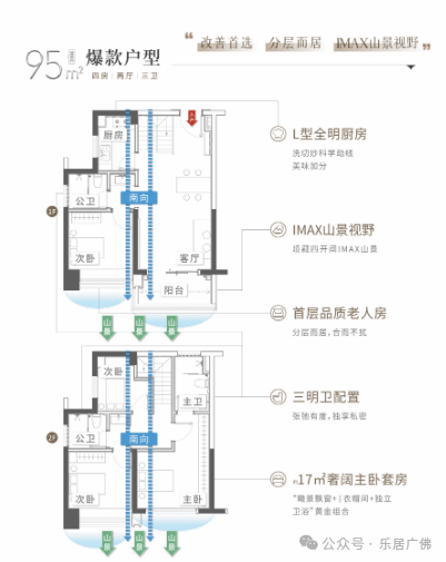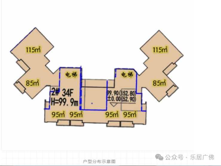 95平(实用115㎡4房)总价:400-420万,余货22套楼层充足