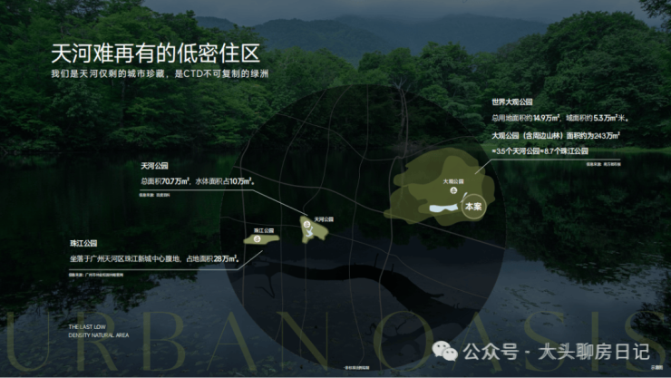 天河第三片绿洲,大观公园:公园用地面积约15万方,加上周边山林面积达到243万方,相当3.5个天河公园,8.6个珠江公园