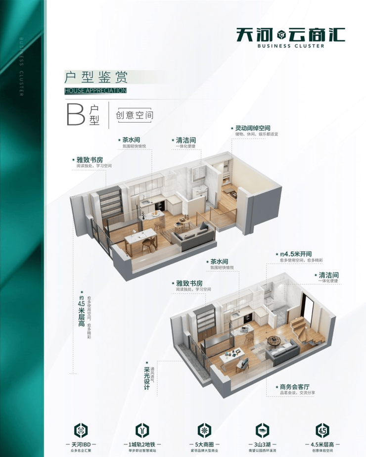 天河云商汇,位居天河智慧城芯,南侧为占地7.5万㎡的万科广场。