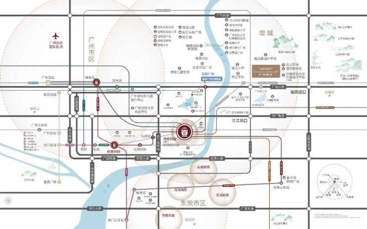 自驾——济广高速三江出口5分钟,50分钟可达天河市区,增天高速(规划中)30分钟从天河到增城,1小时湾区经济圈。
