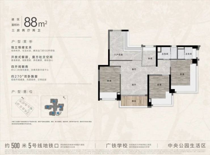 【88㎡三房两卫】