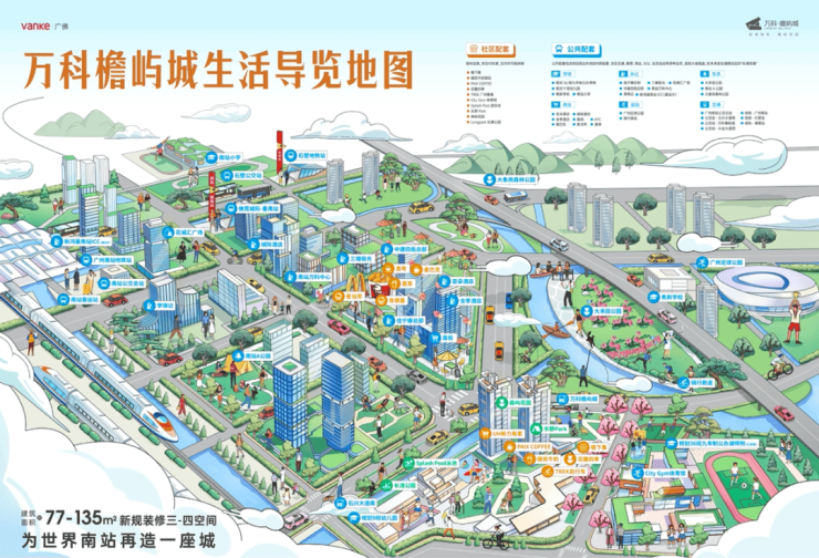 商业方面,1km3商圈,享200万㎡繁华,500m万科南站中心喜街,1km新鸿基南站ICC,南站花城汇,15min长隆万博商圈。