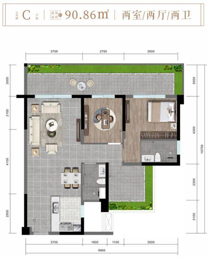 ✨4楼C户型约90.86㎡两房两厅两卫