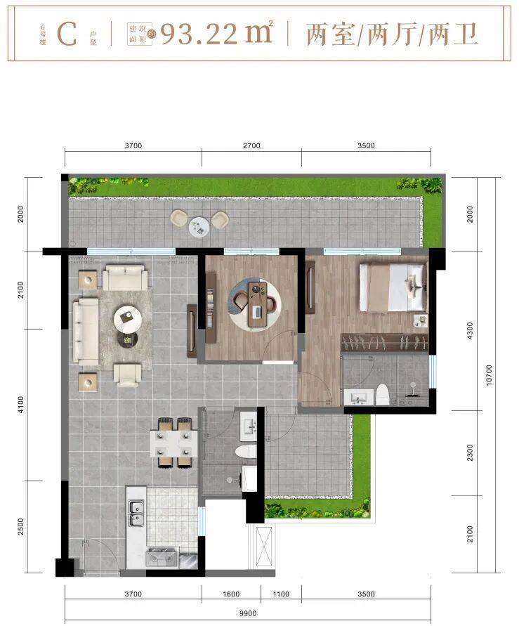✨ 6楼C户型约93㎡舒阔两房两厅两卫