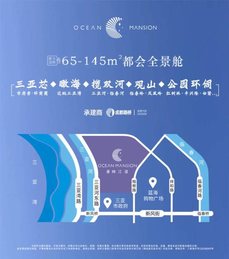 🚗便捷交通:海映江湾项目位于河东路,北接迎宾路,南至鸿洲游艇码头,居三亚城市主干道解放路与凤凰路之间,距离三亚湾直线距离仅1.3公里,距离三亚汽车站约1.4公里,车程约6分钟,距离三亚凤凰岛约2公里,距离大东海旅游区约5公里,车程约13分钟,距离凤凰国际机场14公里,车程约37分钟。距离海棠湾约26公里,车程约40分钟。