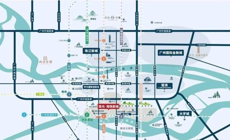 珠光海珠新城位于广州市海珠区南洲街道南洲路与大沙新村东街交叉口东200米处,广州地铁3号线与广佛线交汇的沥滘站附近;属珠江后航道北岸地区,占据广州中轴南端最后1公里,与珠江新城CBD、广州塔共同承载着广州12公里城市中心界面的重磅规划,广州中轴之上最后的塔尖置业珍稀之地。