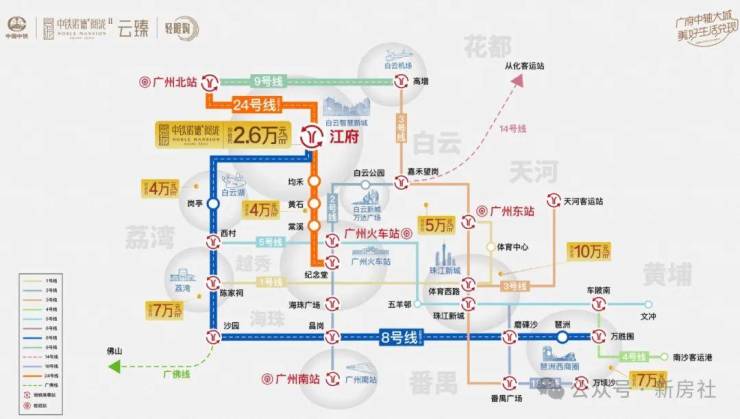 目前这边开发商目前最大的卖点就是交通,就是地铁,地铁8号线北延段,以及24号线的北延段,特别是8号线的北延段,滘心到广州北站,其中江高有个江府站,大家都知道,8号线也叫换乘之王,连接到市区各个位置,看起来也很美好,但不好意思,北延段才开始动工,没真正开通,都会存在不确定的因素,比如什么时候开通就不知道了。