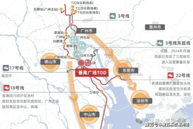 项目交通配套项目距离地铁3号线东延段傍江站直线约500米,步行要900米左右,一站即达番禺广场站。