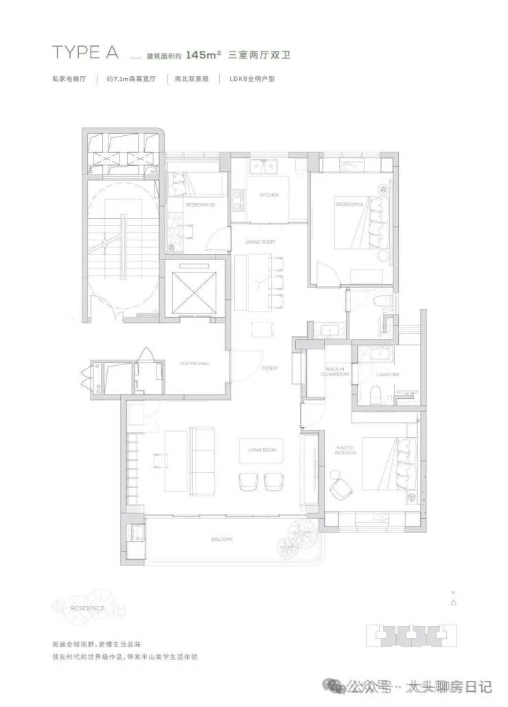 【145㎡户型】独享私家电梯厅-约7.2m²森幕宽厅-LDKB全明户型