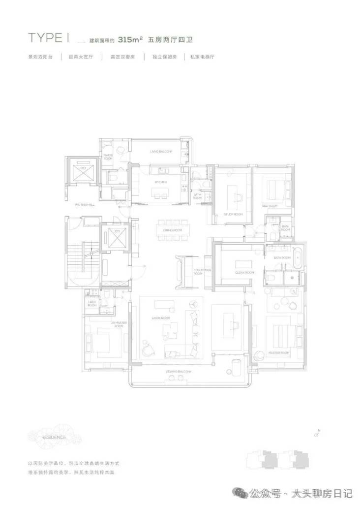 【315㎡户型】南北双阳台-独立保姆房-巨幕大宽厅-私家电梯厅