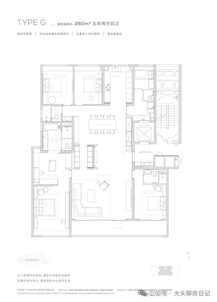 【260㎡户型】超10米南向景观阳台-南北双景观-主套步入式衣帽间-独创灵动岛设计,生活场景多重切换