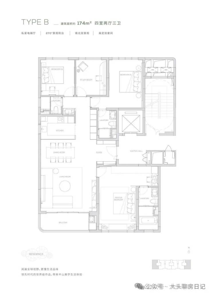 【174㎡户型】独享私家电梯厅-270度环幕观景阳台-高定双套间