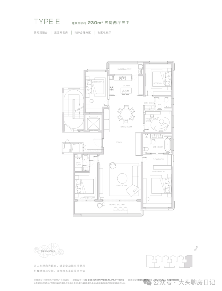【230㎡户型】观景双阳台-高定双套间-私家电梯厅-双洄游动线
