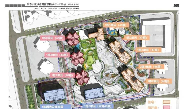 项目住宅产品建设用地面积约 4.1 万㎡,计容建面约 29万㎡,容积率 7.03,规划机动停车 2681 辆。项目由5栋住宅(1#1、1#2、1#3,2#2、2#3)、1栋(1#4)保障房、3栋(1#6、1#7、1#8)回迁房组成、1栋(1#5)公寓组成。