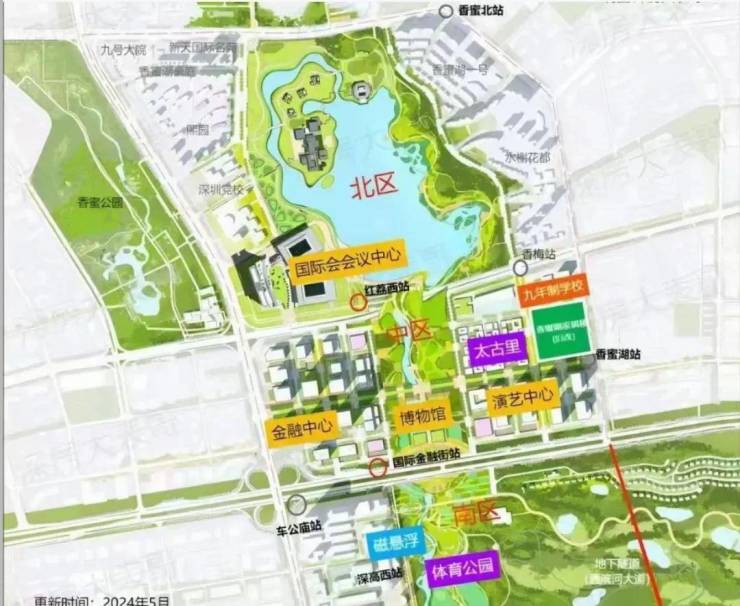 其中,北区定位为国际交流中心和超级城市公园,计划以此为依托打造深圳金融论坛和香蜜湖论坛;中区为融合了金融总部、全球顶级商业都会街区的商务中心区,将形成一个“品”字形的三大文化设施,分别为深圳博物馆新馆、深圳金融文化中心和国际演艺中心,重点发展的产业方向为产业金融、创新资本、财富管理、数字金融、跨境金融。