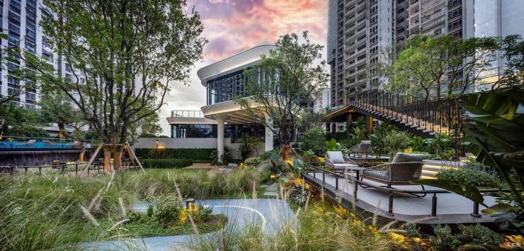 项目的空中园林惊人地大,约2万平的体量接近于一个普通楼盘的面积,大片草坪、灌木、乔木高低错落,在这座“自然森林”驻足片刻,连空气都是慢悠悠的。