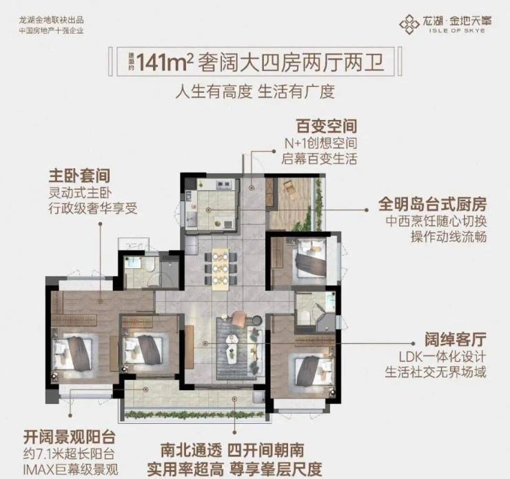 涵盖板块标杆级20000㎡空中花园、板块罕见下沉式生态中庭、板块稀缺的天际圈层会所,以及四重酒店式归家体验。