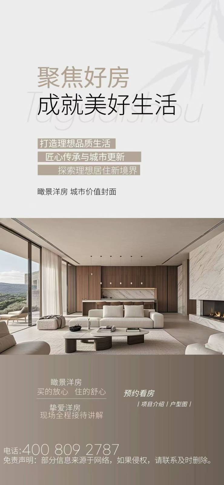 ➢ ➢本项目采用预约制,过来营销中心参观样板间请记得提前拨打开发商楼盘售楼处400热线电话在线预约,感谢您的配合!