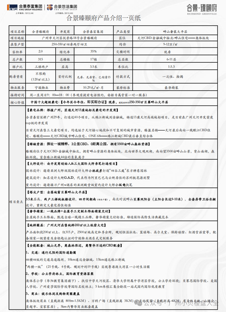卖点一、【根植广州,匠造天河13座地标及豪宅】🌟合景泰富深耕广州27年,打造近40个项目,从珠江新城到金融城,铸造13座天河高端地标项目,是目前在广州天河开发密度最高的开发商。