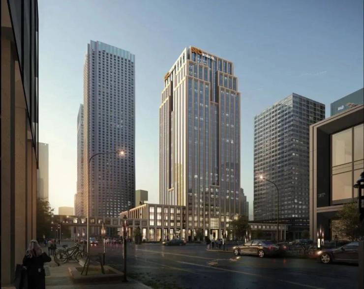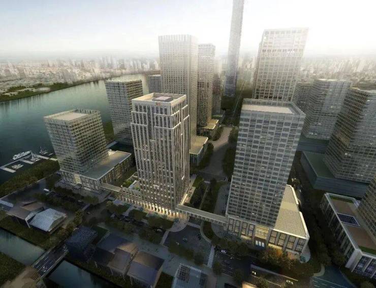 本项目设计引入“古典型制”的理念,以形体对称为原则,以竖向石材线条为语言,以塔楼层层收分为手法,诠释金融城整体风貌特色。