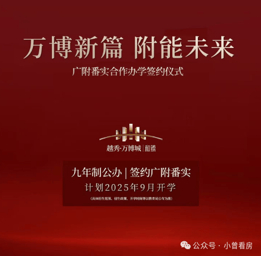 越秀万博城引入番广实验教育集团办学,首期建设了一所54班的小学和一所36班的初中,均由广大附中番禺实验学校具体管理。
