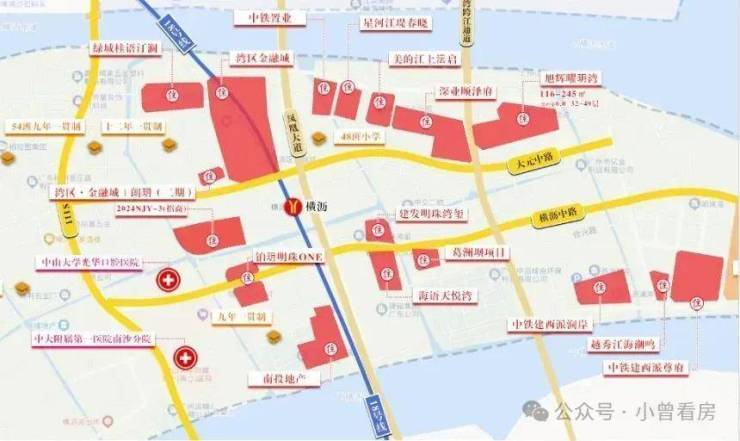 生活配套方面,项目周边规划和建设中的资源也很丰富。教育上,横沥岛规划了 3 所小学、3 所九年制学校和 1 所十二年制学校,其中 54 班九年制学校和 48 班小学预计 2026 年前投入使用。