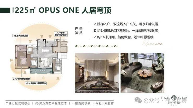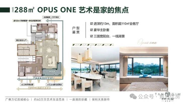 【OPUS ONE臻稀藏品 迭代登场】在原经典保利天珺上,结合映月湖的稀缺湖景、人文艺术标签,融合欧洲顶级酒庄OPUS ONE内敛高奢的酒文化理念,将海派南洋风设计精神融入现代风格建筑,用“传承与创新” 打造天珺“典藏”系列之OPUS ONE ,源于天悦,超越传奇。