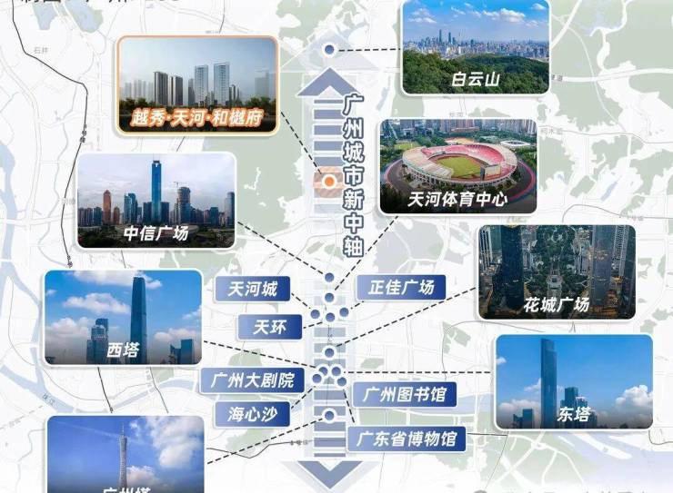项目位于广州城市中轴,天河北板块,距离珠江新城直线距离仅5公里,一路串联广州大道北、天河北、珠江新城等商圈