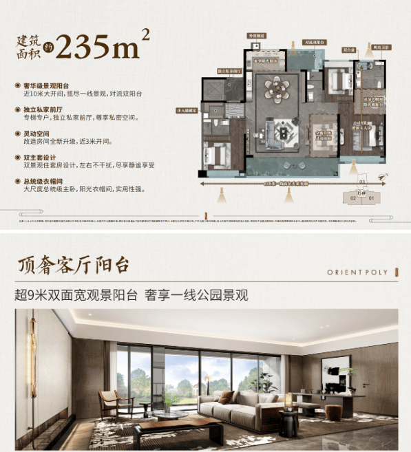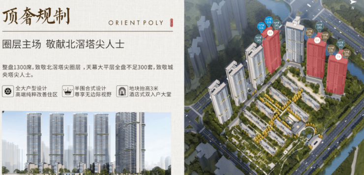 项目占地约5.86万平方米,总建筑面积高达约30.46万平方米,定位整体偏改善,半围合式布局,高低配,7栋高层住宅+12栋叠墅,纯住宅社区。最低118㎡起,纯四房小区。其中4栋为2梯4户设计,7栋及全新6栋均为3梯3户专梯专户配置,最高达49层,满足不同客户的尊贵需求。