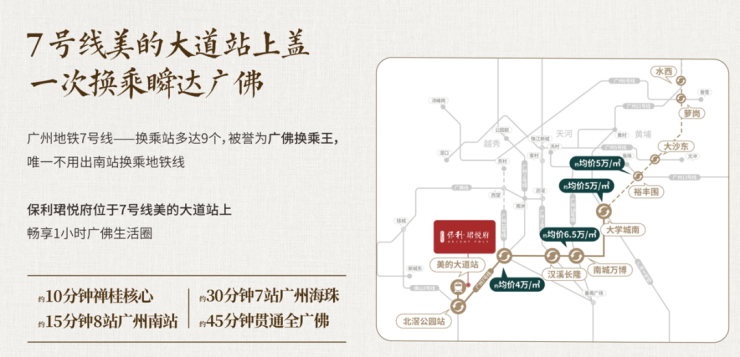 保利·珺悦府不仅是北滘新城的璀璨明珠,更是佛山唯一纯地铁上盖豪宅项目。项目紧邻地铁7号线美的大道站,便捷的地铁交通网络让业主轻松穿梭于城市之间,无论是日常出行还是商务往来,都能享受到前所未有的便捷与高效。