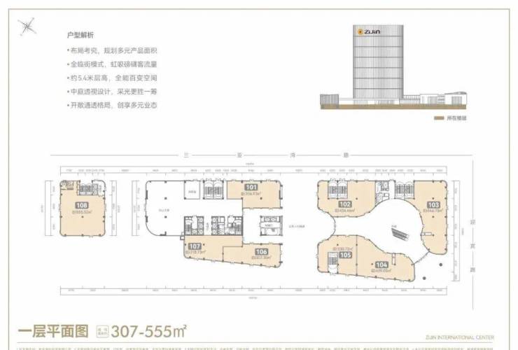 凤凰海岸单元——三亚中央商务区核芯片区,定位为旅游港自贸服务与邮轮、游艇、文化艺术综合消费区。紫金国际中心落位于此,匠造建面约6万㎡国际总部基地,实现区域城市服务、旅游文化、总部经济等产业资源全覆盖。
