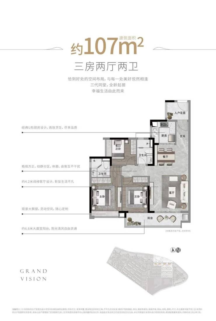 舒适阳光三房 107㎡三房两厅两卫,约6.6米大面宽阳台,阳光清风入室