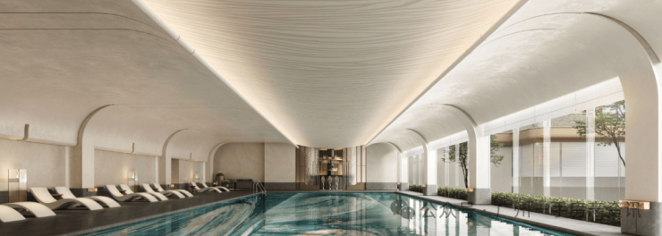 项目配建约 3600㎡高端私人会所,涵盖私宴厅、健身空间、瑜伽室、国医馆、9 米挑高篮球场及赛事标准游泳馆,一站式满足圈层社交、健康养护、家庭休闲等全维度高阶生活需求。