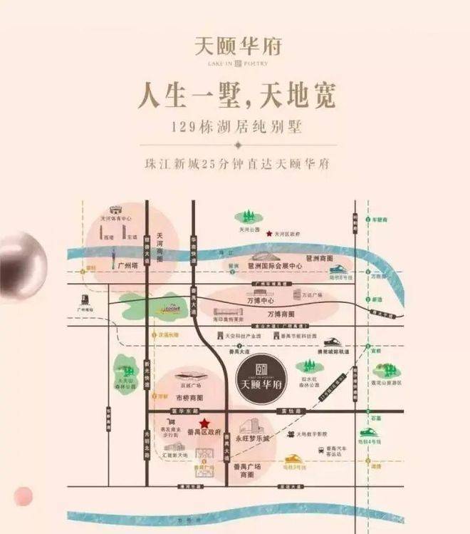 作为番禺广场板块唯一纯别墅 ,天颐华府于天赋地脉之上,集萃一城精华。北接广州第四CBD万博板块,南承对外开放门户枢纽南沙自贸区,东靠番禺创新经济与产业开发板块,西连南站板块。
